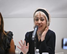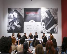 La artista chileno-mexicana Mon Laferte, en rueda de prensa en el Museo de las Artes de esta Casa de Estudio, expresó cómo la rebeldía y personalidad de Violeta ha inspirado parte importante de su quehacer artístico, por lo que esta invitación ha sido para ella una oportunidad de agradecer y homenajear.